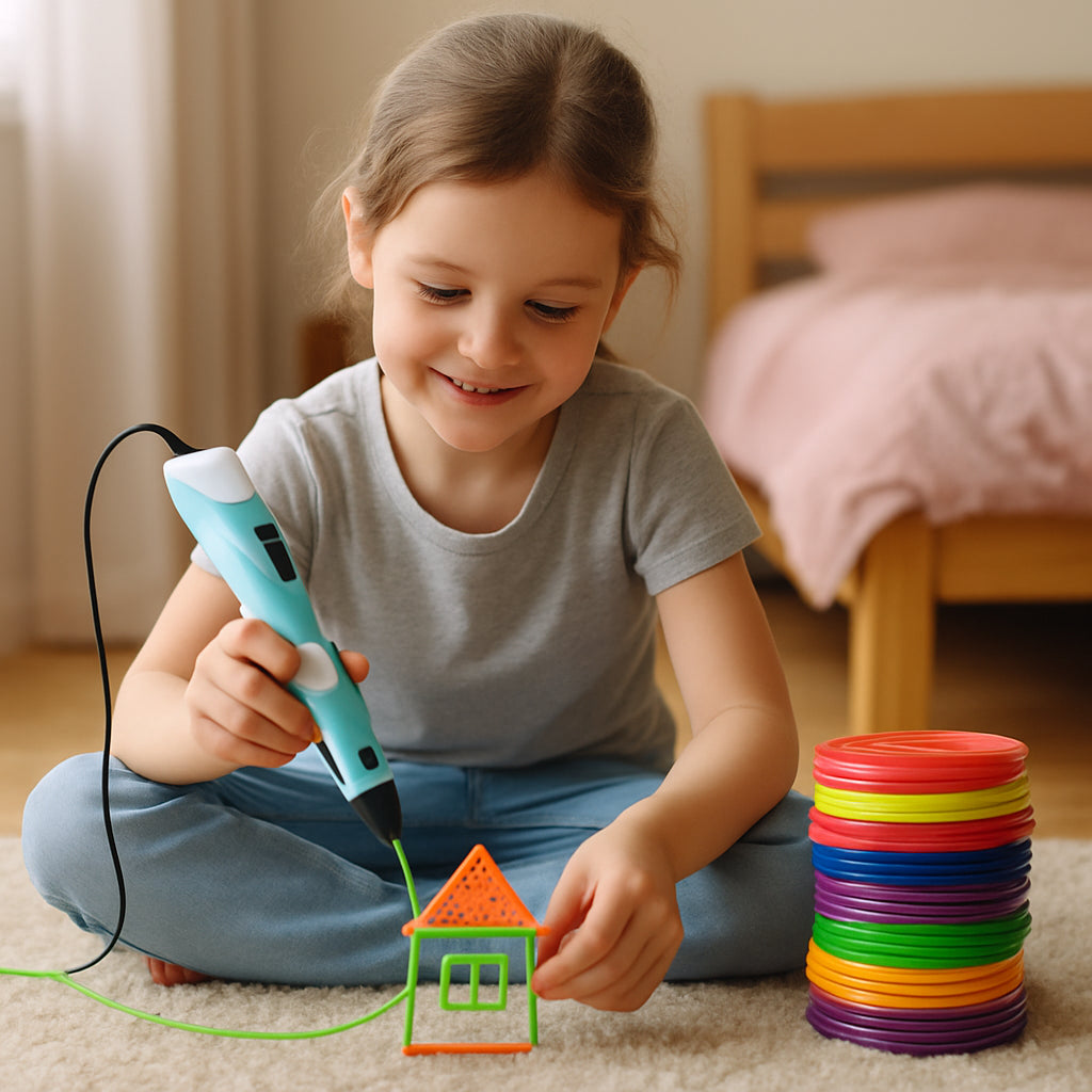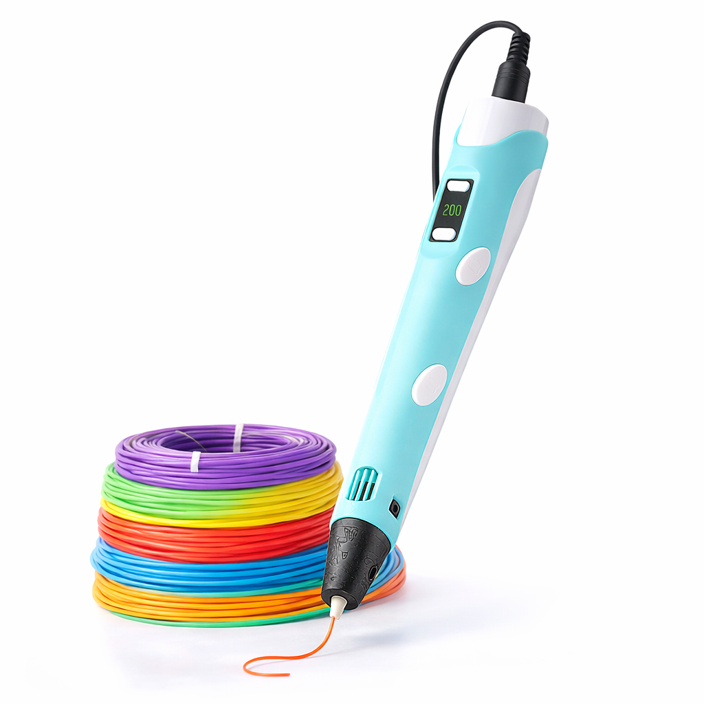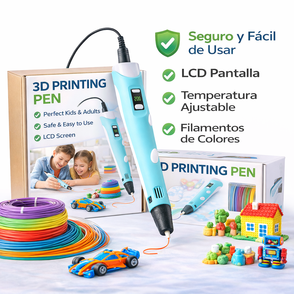 El Bolígrafo 3D transforma tus ideas en objetos reales ✨. Permite dibujar en el aire con filamento PLA para crear figuras, maquetas, adornos, reparaciones rápidas o cualquier proyecto creativo que imagines 🎨.